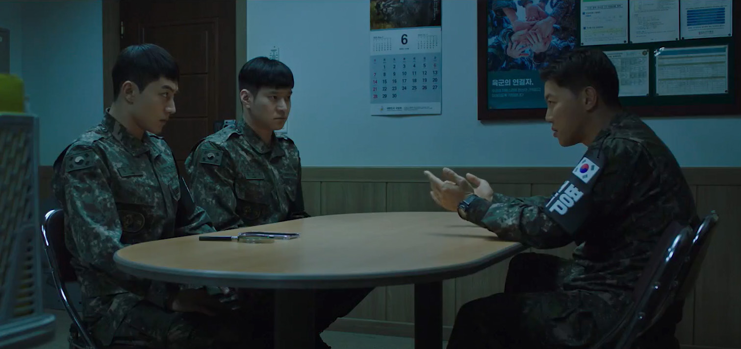 ※ Ex(1): 03:35 - A scene where Private Kim Hyun-soo and Sergeant Park Cheon-woo are on night duty