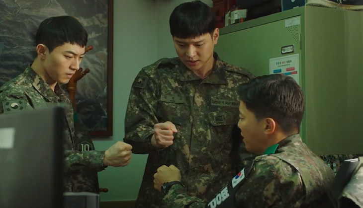 | Commander: | (ST) 많이 아프다고? 근데 왜 미친놈처럼 밤에 철책선 넘어서 싸돌아다녀?... 일단 본부 중대에 보고 올릴 테니까 병원 가서 치료부터 받아. (TT) Cậu có đau ốm gì không? Vậy tại sao cậu vượt rào qua bên kia như kẻ điên vậy?... Tôi sẽ báo cáo cậu lên trụ sở chính, thôi tới đó điều trị cho khỏe lại (너 많이 아프다고? 근데 왜 너가 미친놈처럼 밤에 철책선 넘어서 싸돌아다녀?... 일단 내가 본부 중대에 보고 올릴 테니까 너는 병원 가서 치료부터 받아). |